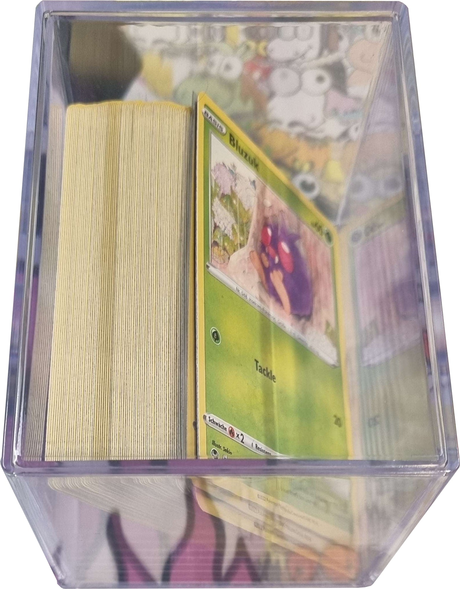 Du willst deine Karten platzsparend und sicher aufbewahren? Gönn dir diese Aufbewahrungsbox. Der Deckel ist abnehmbar und es passen mindestens 100 Karten (klein ohne Hülle) oder 250 Karten (groß - ohne Hüllen) rein. Perfekt zum Lagern und sammeln deines Lieblings-TCGs.
