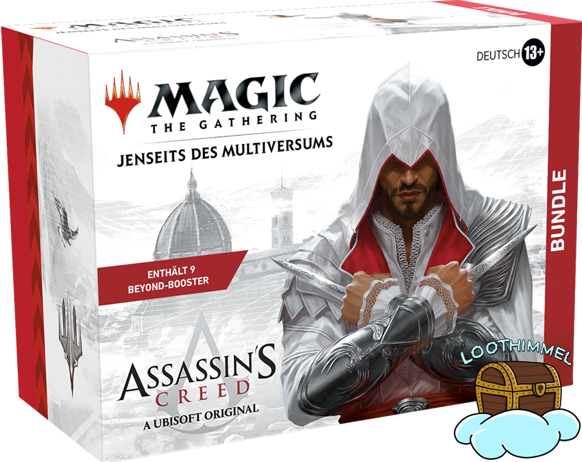Es ist Zeit sich auf die Dächer zu schwingen und zu sein was du willst.....also in einem Video/Magic Spiel. ASSASSIN'S CREED ist da und wartet mit Beyond Boostern drauf von dir gelootet zu werden. Also schnell in einen Heuhaufen und die Klingen wetzen!